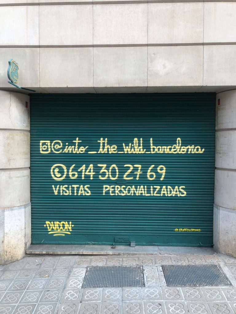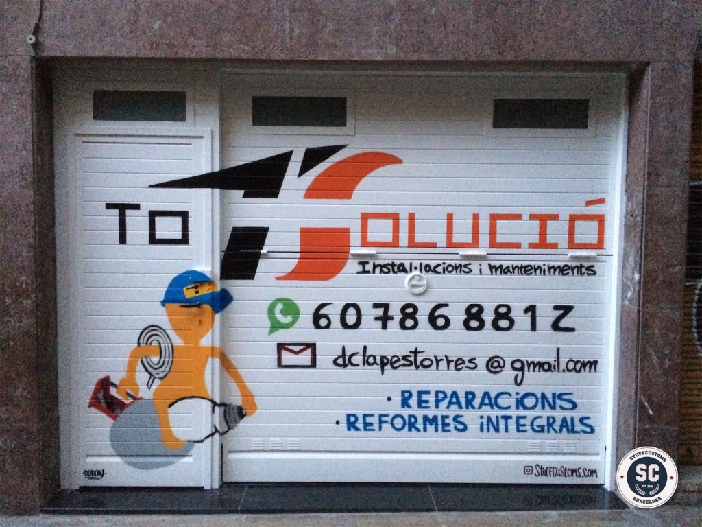 Graffiti estilo tarjeta informativa en persianas: nuestros trabajos en Barcelona