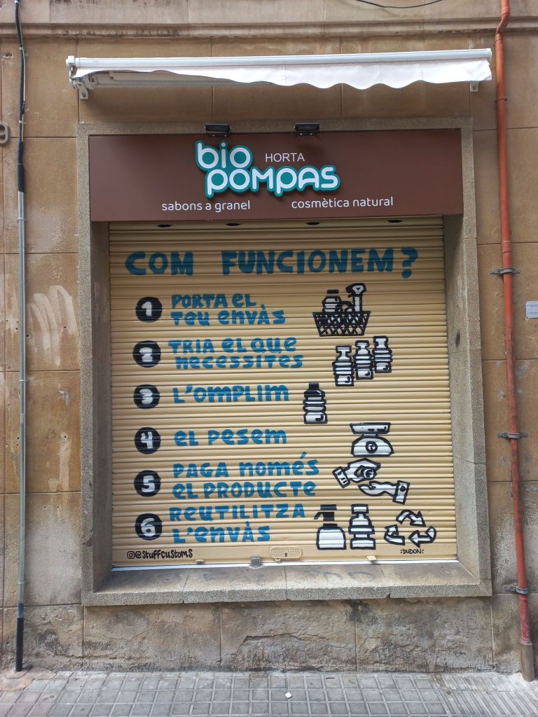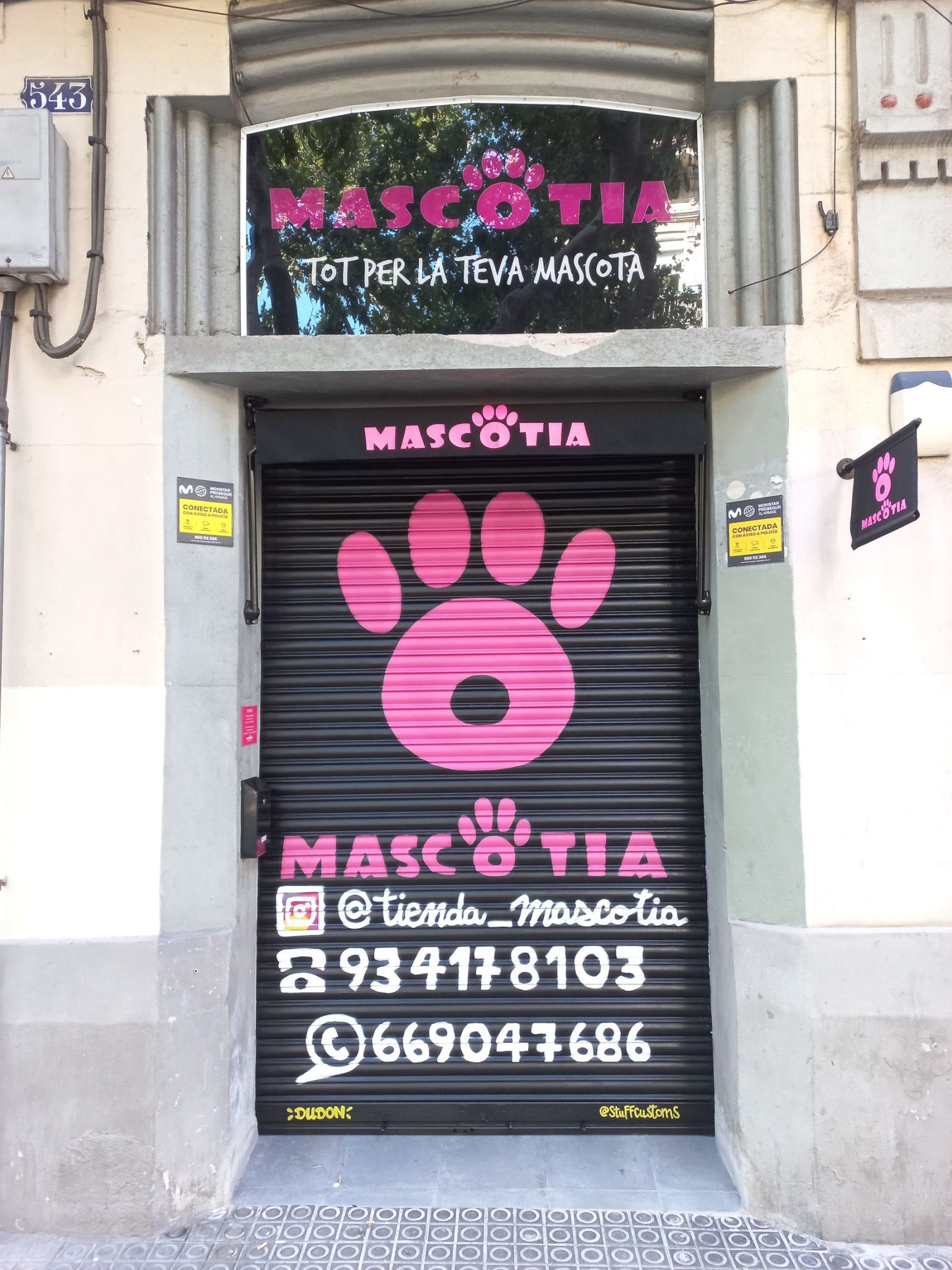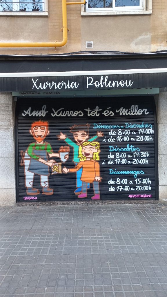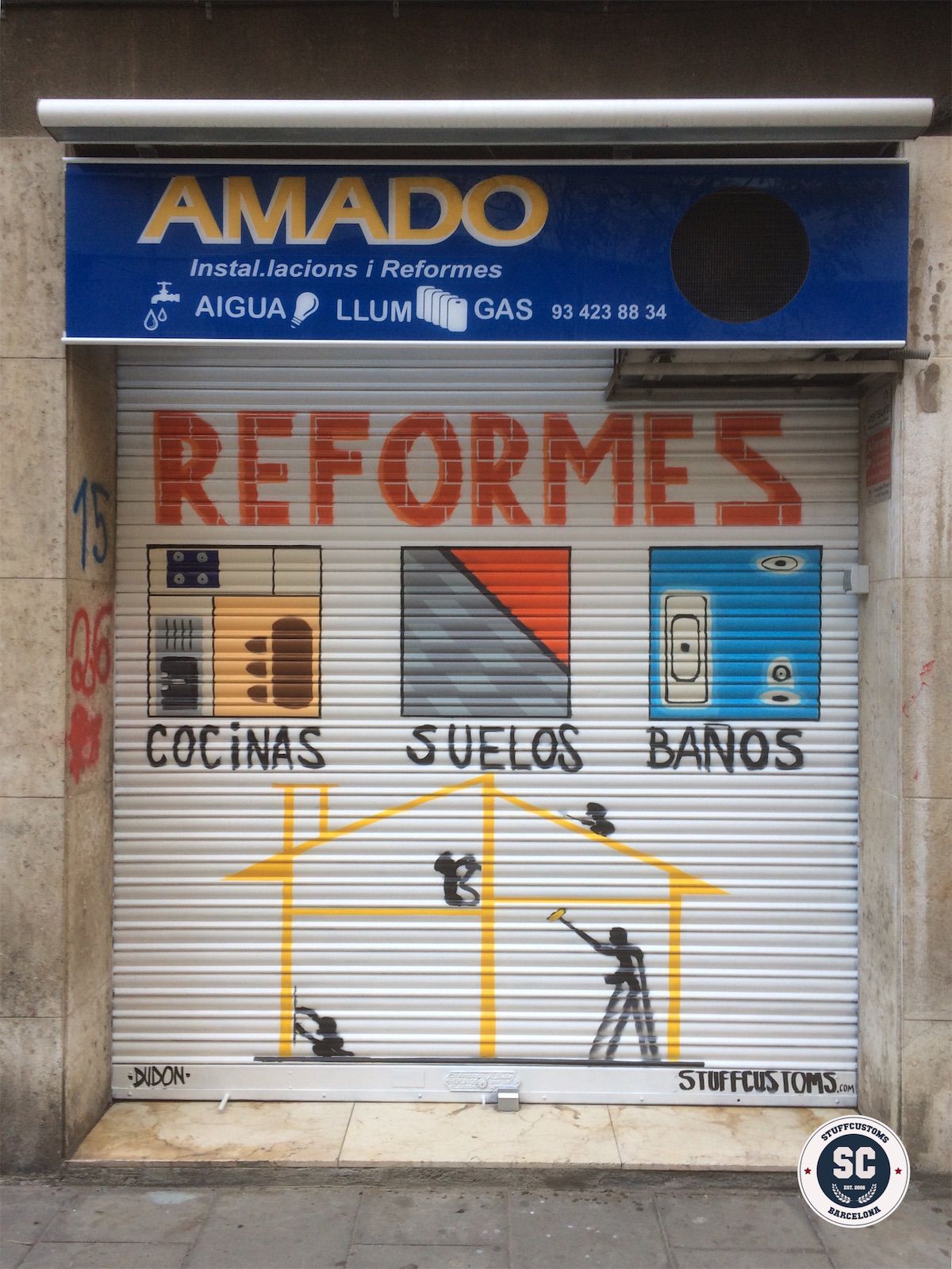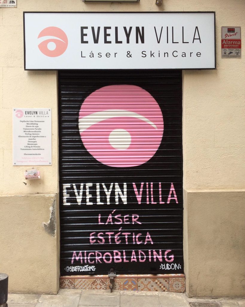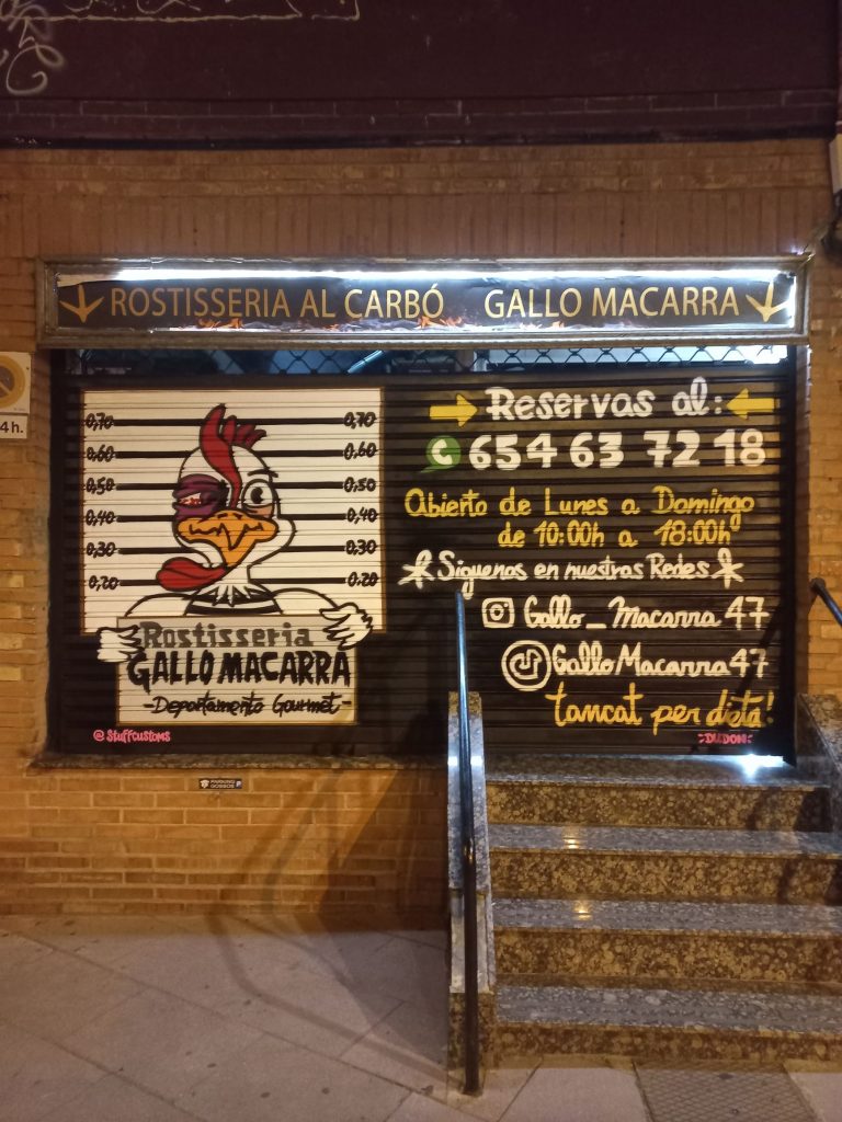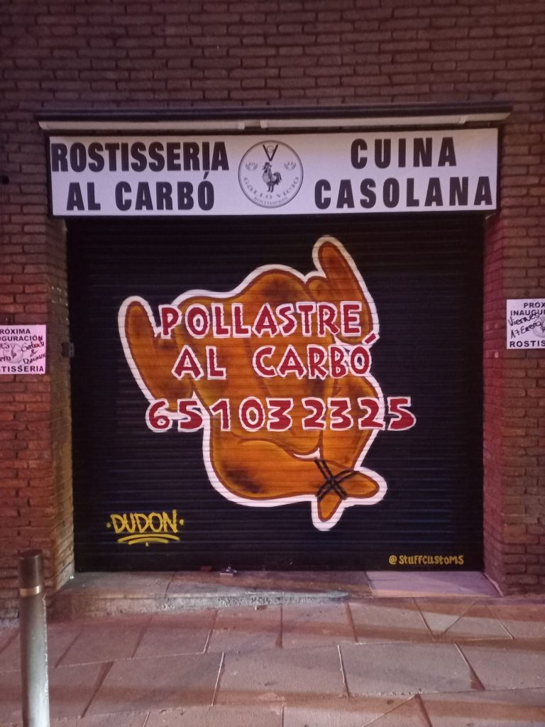 Estos graffitis estilo tarjeta informativa en persianas comerciales han sido realizados en diferentes barrios de Barcelona y alrededores, como Sants, el Clot, Les Corts, l’Eixample y Poble Sec, garantizando resultados limpios, profesionales y visibles para cada negocio.