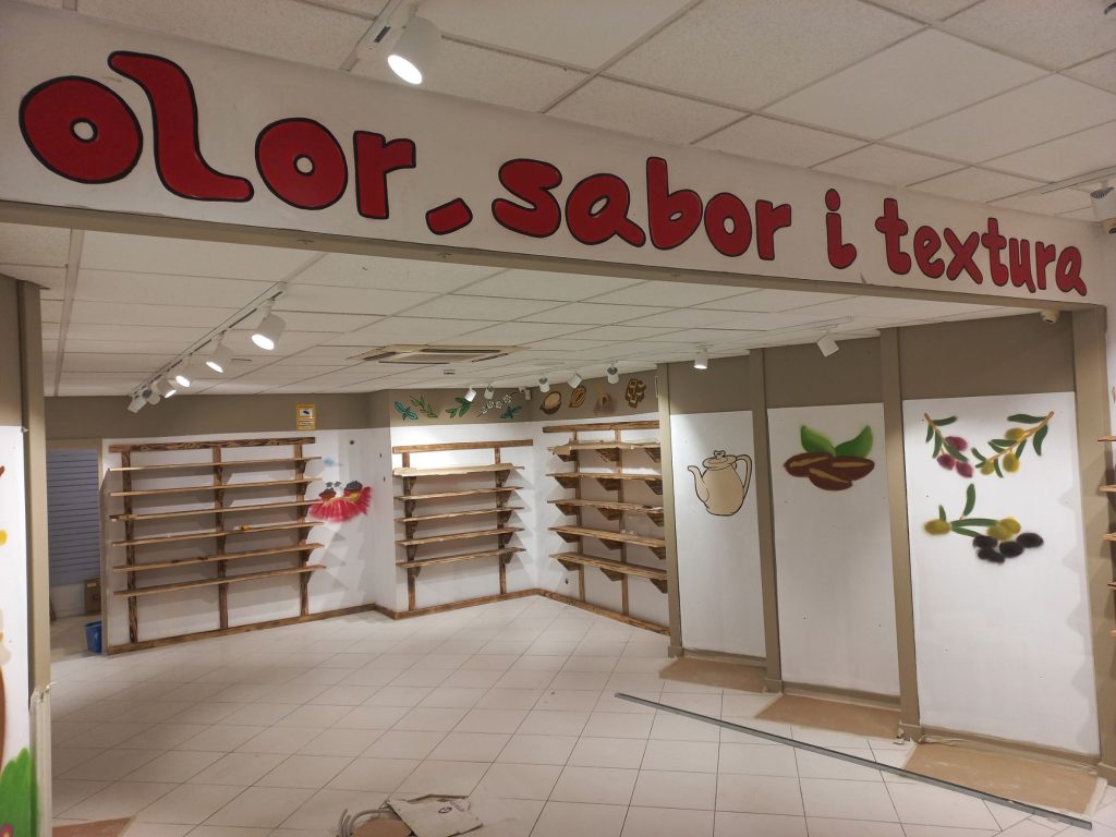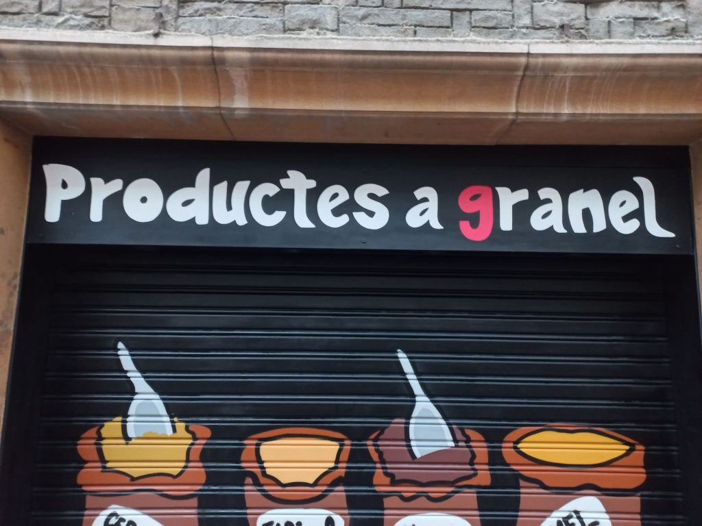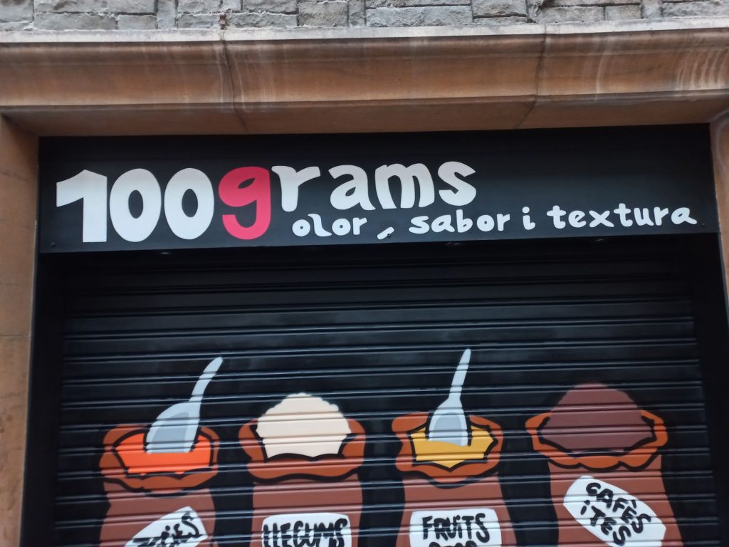 • persiana microperforada rotulada a mano para pastelería en Barcelona